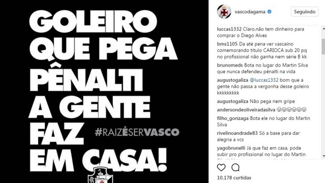 Campeão carioca sub-20 ao vencer o Flamengo na decisão, nos pênaltis, nesta quarta-feira, em Moça Bonita, o Vasco provocou o rival nas redes sociais logo em seguida. Aproveitando-se do fato de o jovem goleiro João Pedro ter defendido a cobrança do meia rubro-negro Patrick, o Cruz-Maltino soltou: