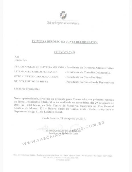 Grupo "Vascaínos Unidos" divulgou agora documento da convocação confirmando as informações sobre a Junta citadas aqui há pouco #lanceVAS
