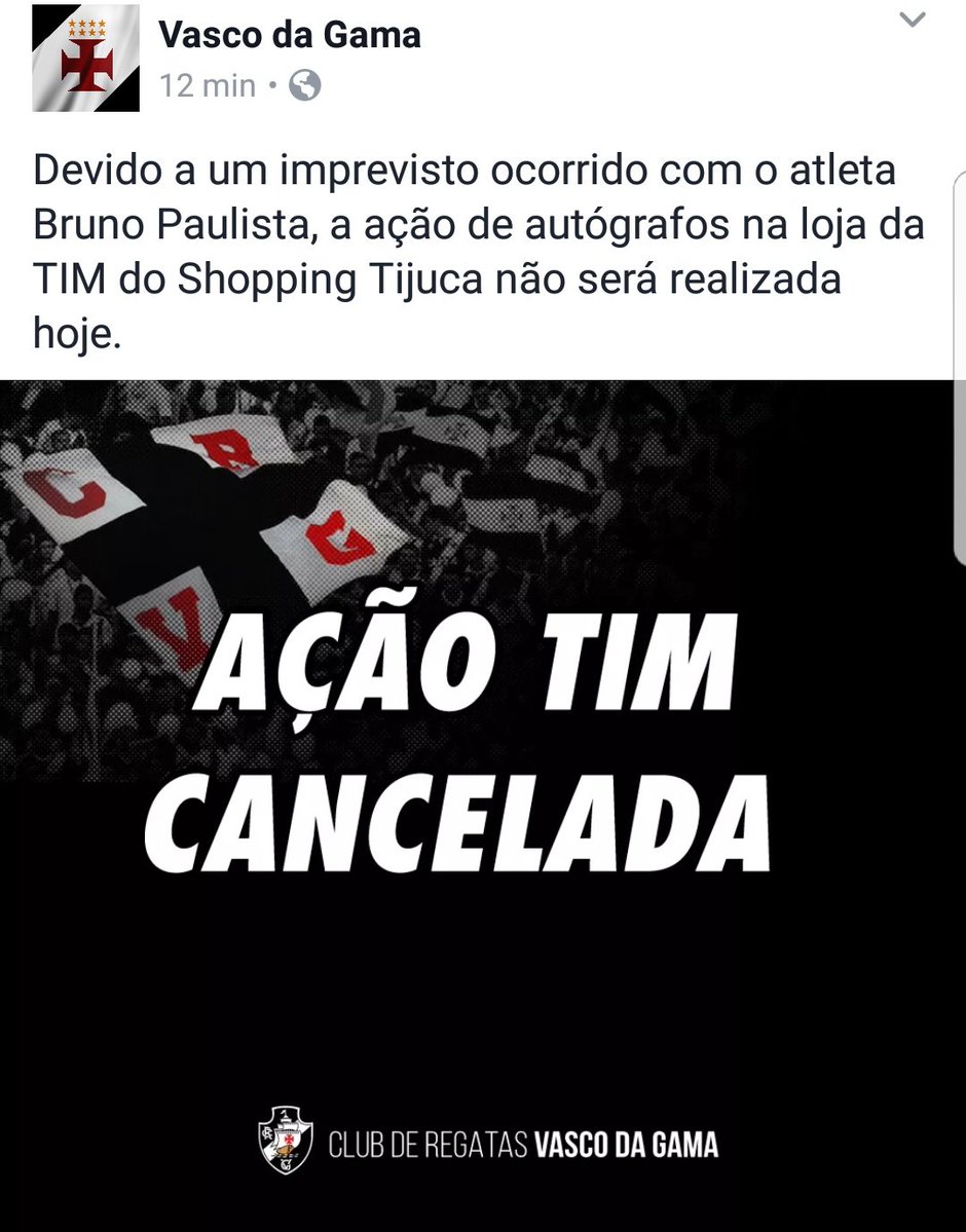 Vasco informa cancelamento da sessão de fotos com Bruno Paulista por ele ter sofrido um imprevisto #lanceVAS