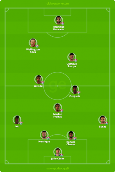 Pela terceira vez no campeonato, Abelão tem a chance de repetir a escalação. O time, então, será o mesmo do empate com o Santos e da vitória diante do Atlético-MG. A novidade estará no banco: o meia Sornoza volta a ser relacionado após um turno e um jogo fora curando fratura na perna esquerda. Além do equatoriano, há chance de dois reforços serem opção: o volante Richard e o atacante Romarinho podem ficar na reserva.