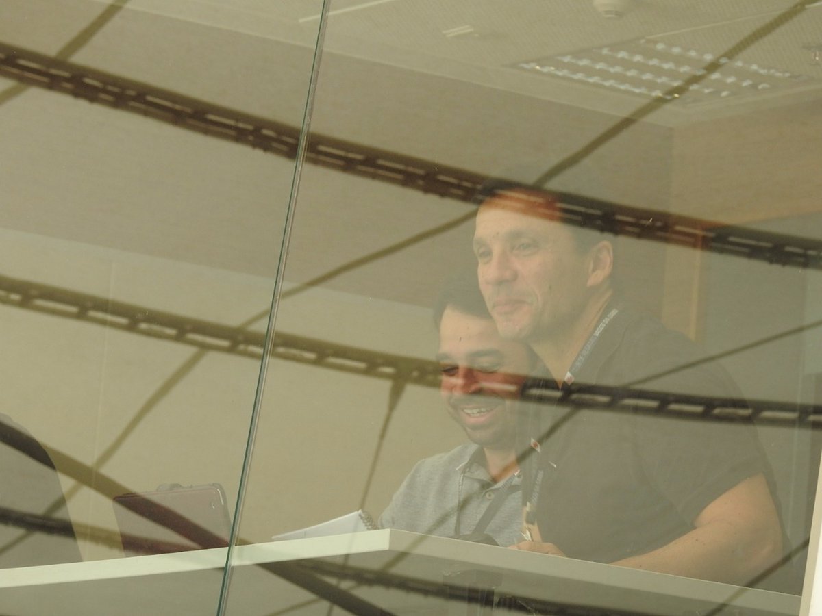 Auxiliar de Zé Ricardo, Cleber dos Santos também assiste ao jogo, bem como o novo preparador físico Ricardo Henriques. #trmaraca