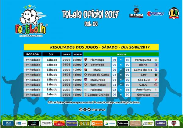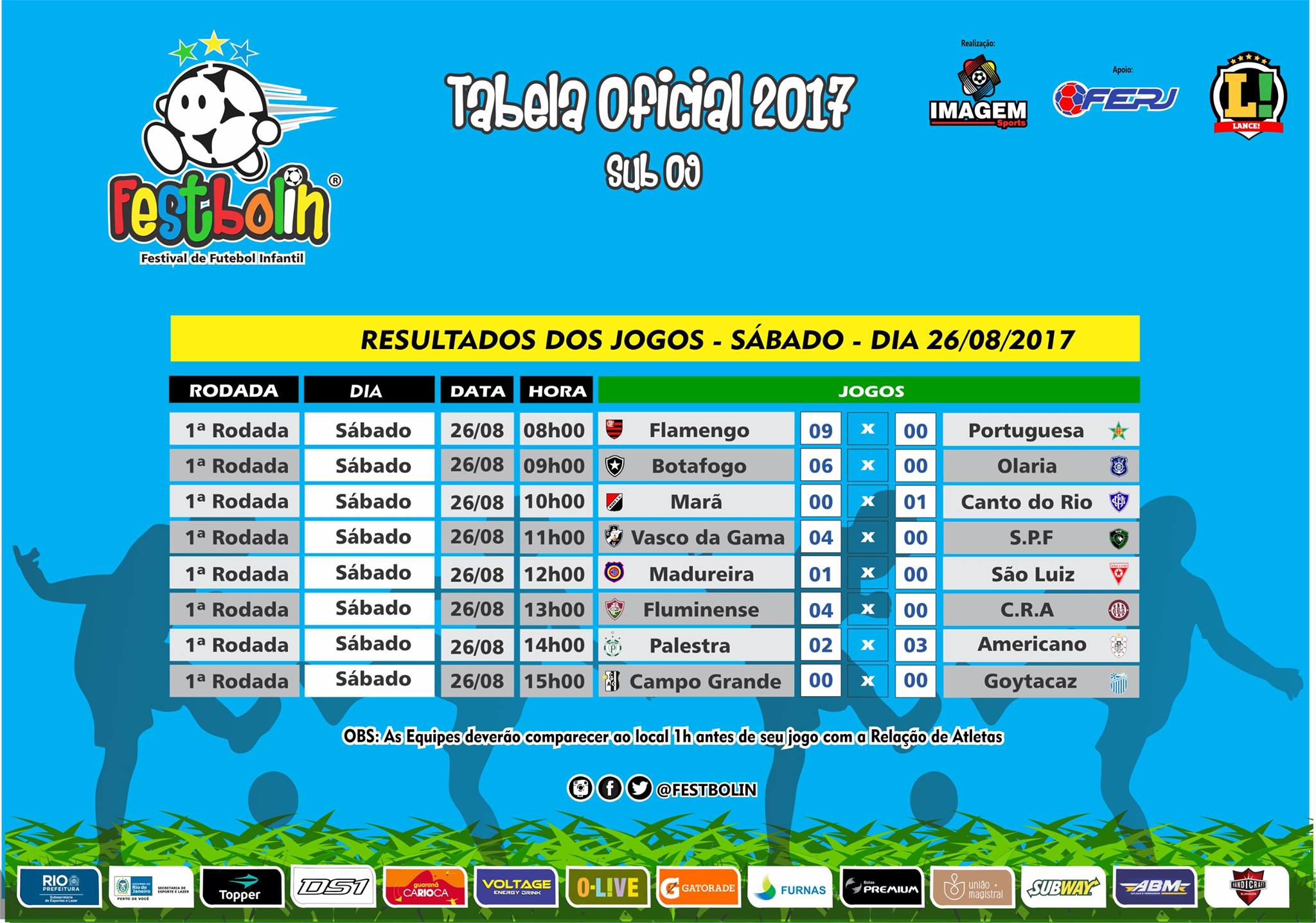 Seguem os resultados dos jogos deste sábado dia 26/08/2017 no Festbolin 2017 na categoria sub-9.