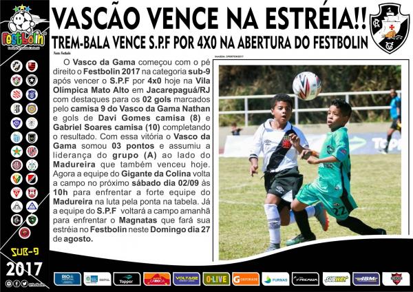Pré-Mirim: Vasco vence o SPF por 4 a 0 na estreia no Festbolin Sub-9