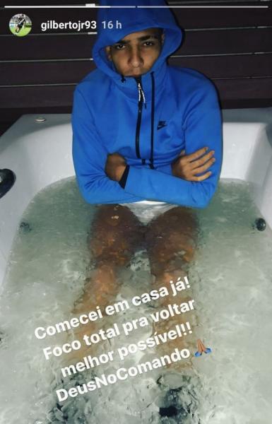 Gilberto inicia tratamento de lesão em casa na banheira com gelo