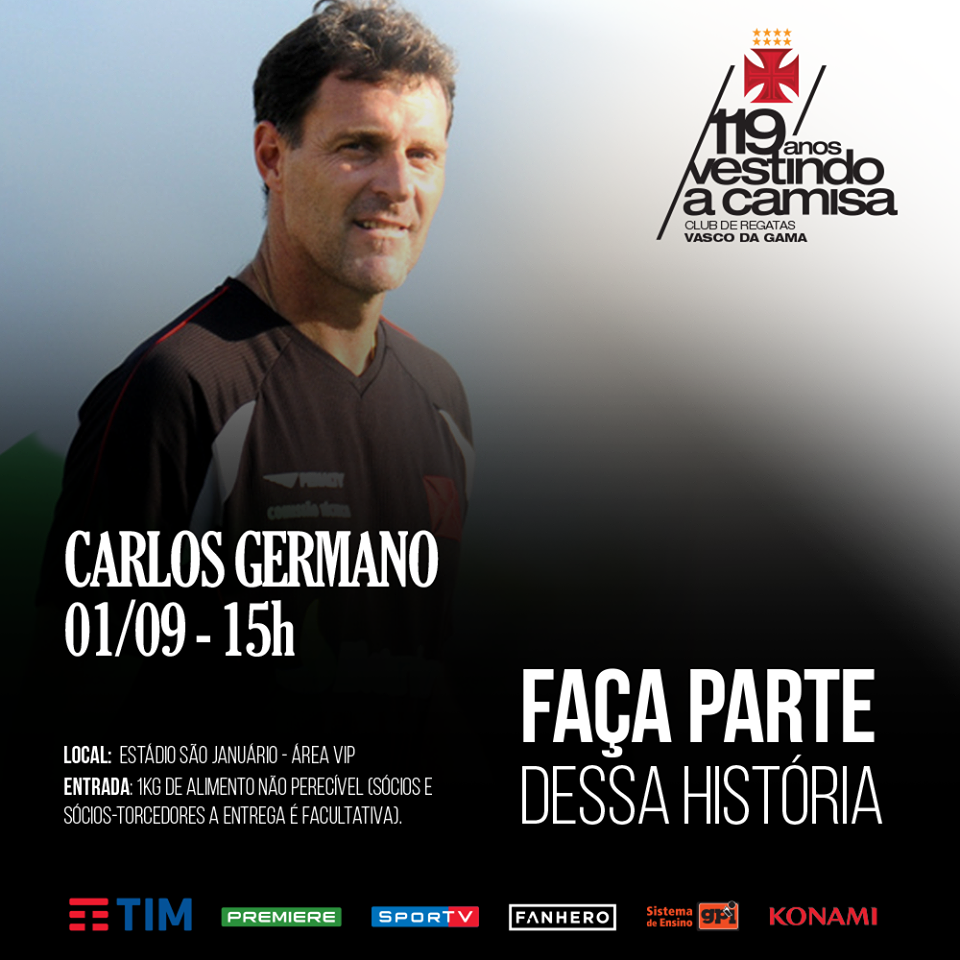Carlos Germano também estará na Exposição 119 anos Vestindo a Camisa nesta sexta-feira! Nosso ídolo relembrará os grandes momentos da nossa história e participará de uma sessão de fotos com os vascaínos.