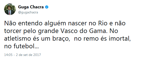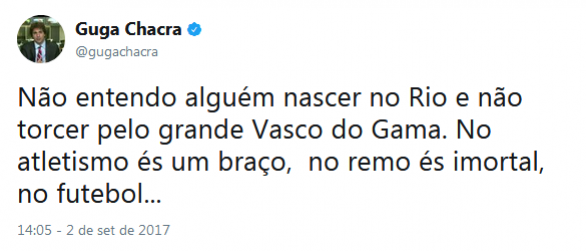 Jornalista Guga Chacra: 'Não entendo alguém nascer no Rio e não torcer pelo grande Vasco do Gama'
