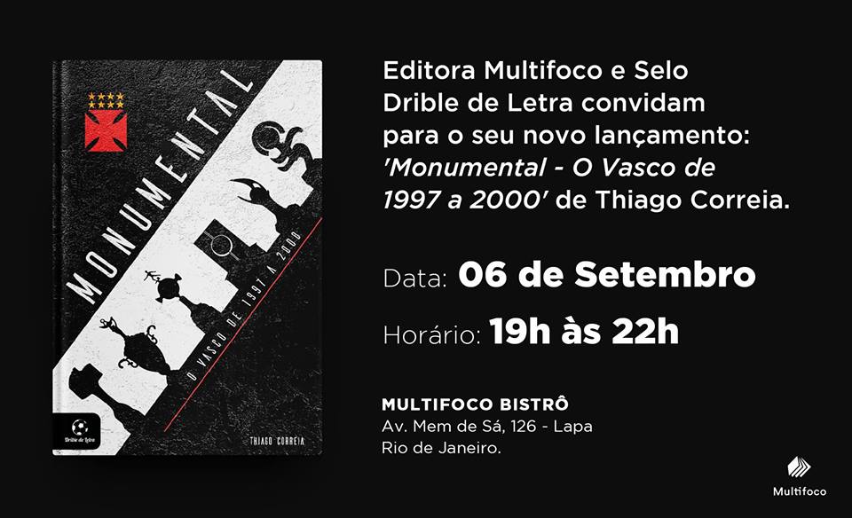 No próximo dia 06/09 (quarta-feira, véspera de feriado), o jornalista Thiago Correia lançará "Monumental - O Vasco de 1997 a 2000" (Selo Drible de Letra/Editora Multifoco), que conta com mais de 50 entrevistas e depoimentos, como por exemplo de Edmundo, Juninho Pernambucano, Antônio Lopes, Luizão, Pedrinho, Mauro Galvão e Felipe: