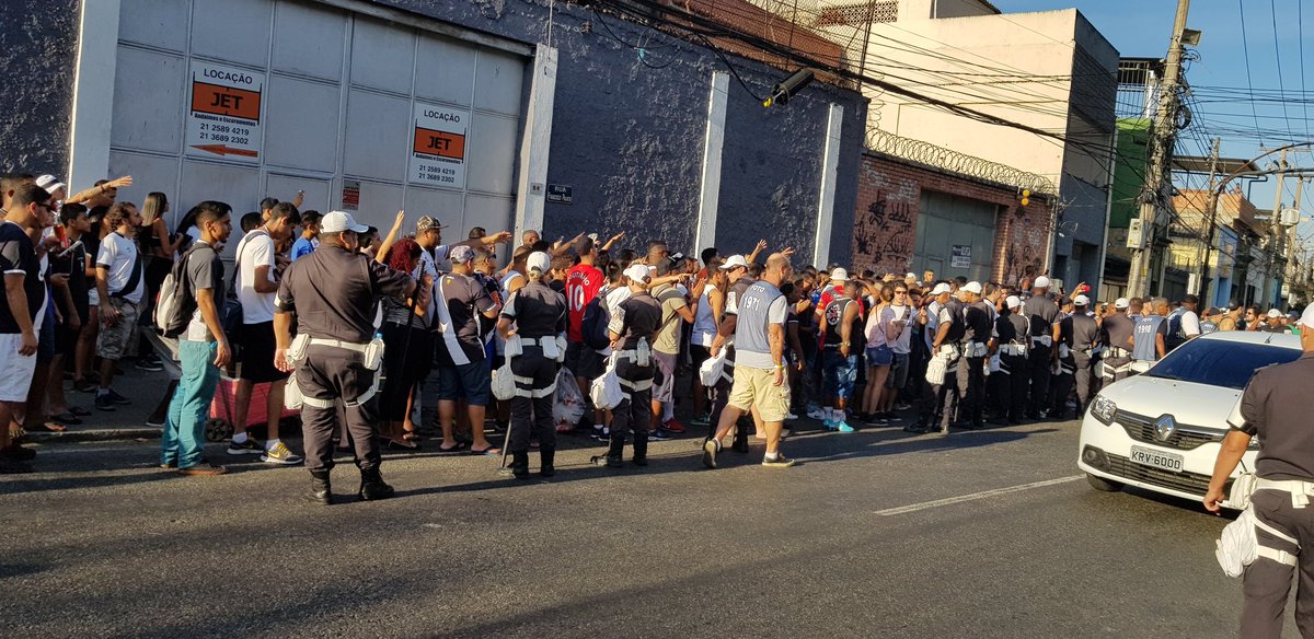 Apesar dos portões fechados, a torcida compareceu e ficará no lado de fora de São Januário em uma espécie de "abraço coletivo" #lanceCOLINA