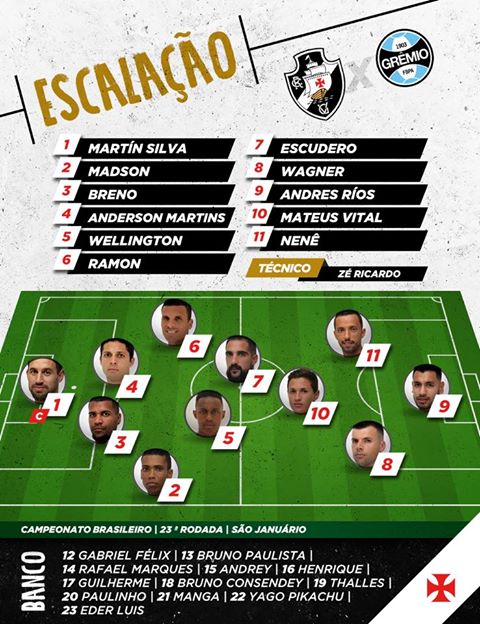 Confira a escalação do Vasco para a estreia de Zé Ricardo como técnico