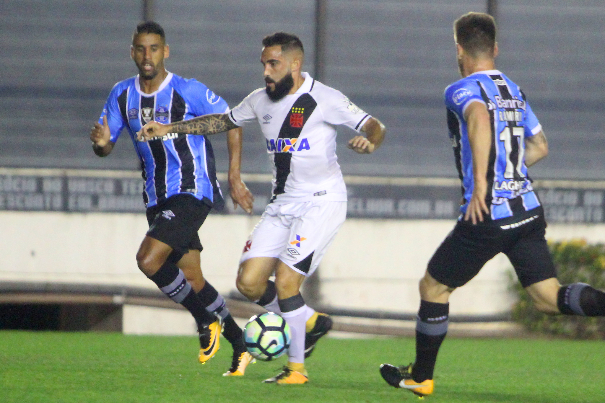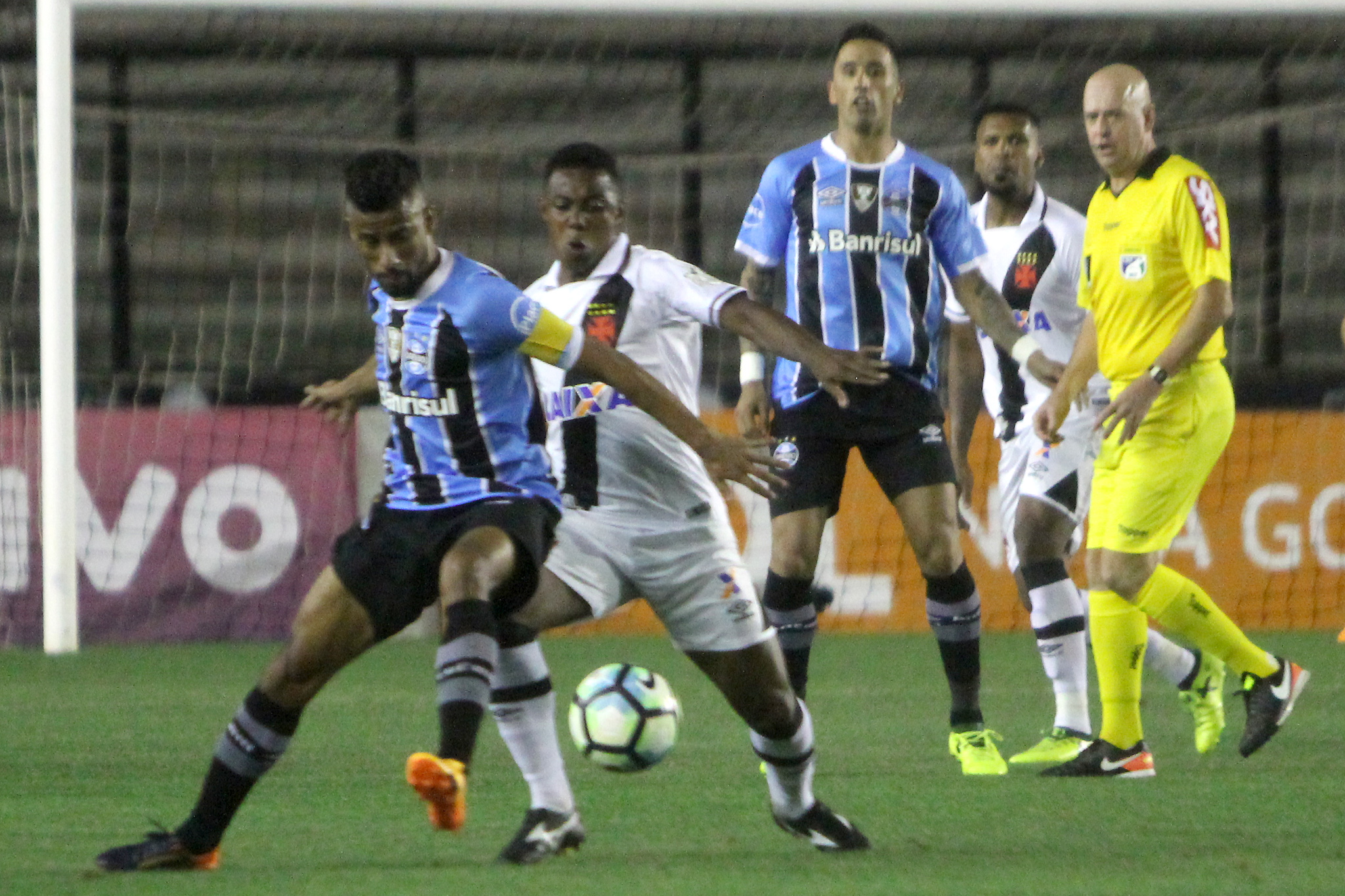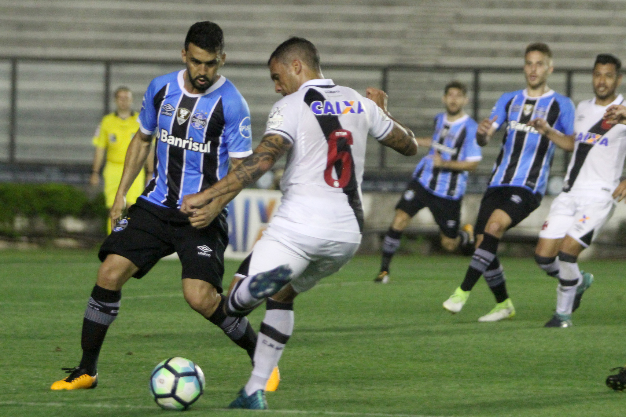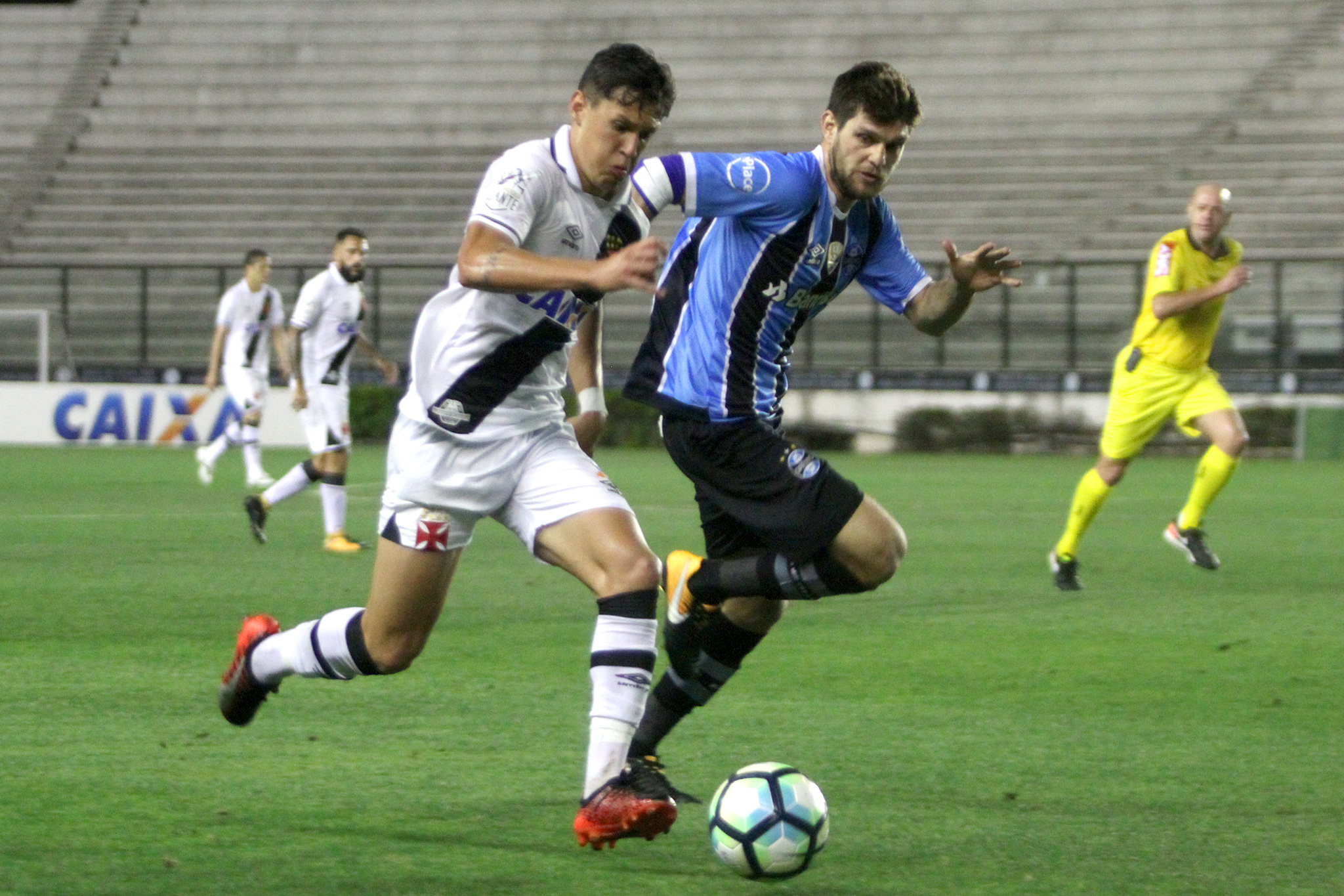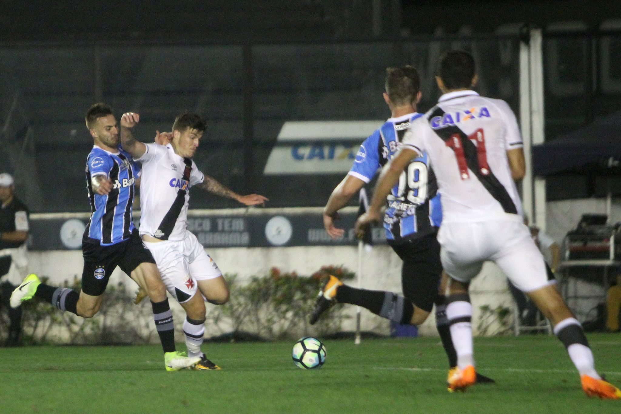 O Grêmio começou melhor a partida, com mais posse de bola, mas sem conseguir passar pelo boa marcação dos cruzmaltinos. O Vasco, aos poucos, equilibrou o confronto e passou a avançar com mais intensidade, só que sem deixar espaço no setor defensivo. Assim, os lances de perigo não aconteciam em São Januário.