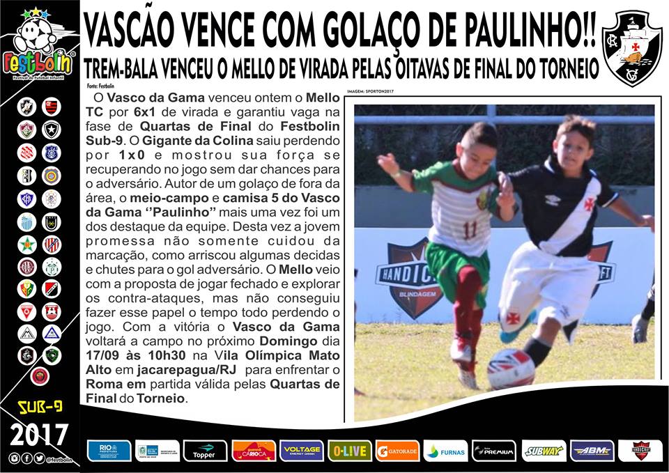 Pré-Mirim: Vasco vence o Mello por 6 a 1 pelas oitavas do Festbolin Sub-9