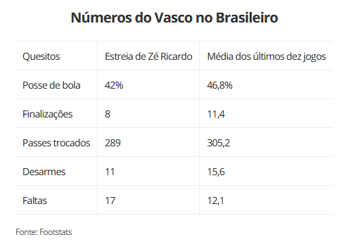 Com Milton Mendes, o Vasco era montado para marcar forte e sair em contra-ataques. Foi atrapalhado em muitos jogos porque saía atrás no placar e não tinha um plano alternativo. Em sua estreia, Zé se saiu melhor: controlou o ímpeto do Vasco e foi eficiente nos contra-ataques.