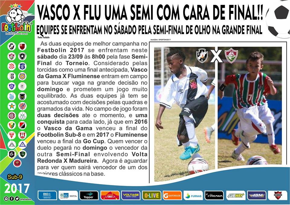 Pré-Mirim: Vasco e Fluminense fazem semifinal do Festbolin Sub-9 neste sábado às 8h