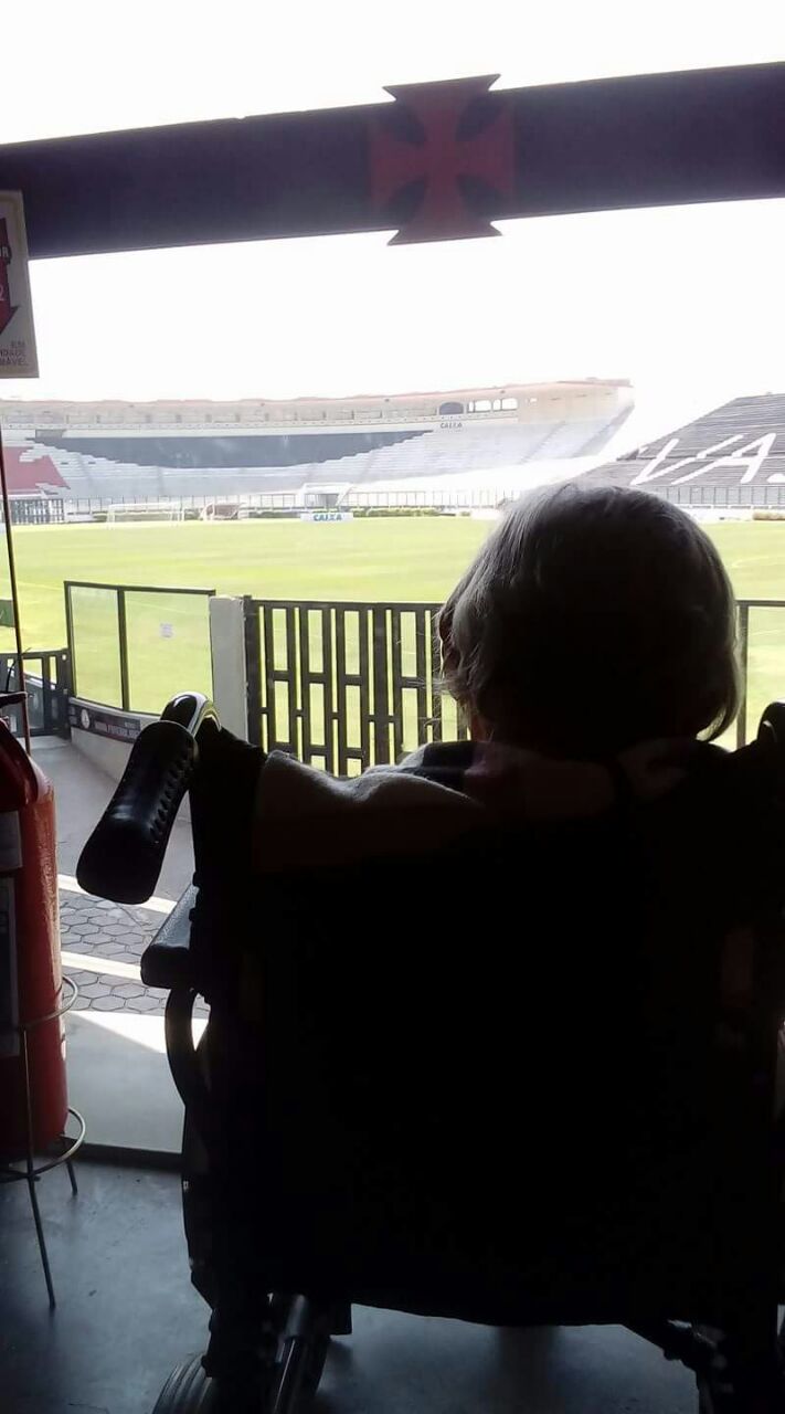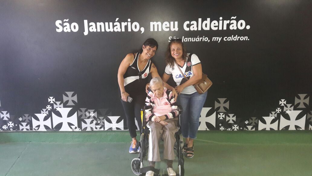 A família, de início, ficou apreensiva. Dona Zizi não anda mais, fala quase nada e muitas vezes sequer abre os olhos. Que ideia essa de levá-la para São Januário. Mas Fátima e Elione insistiram – sentiam que ali era o lugar onde ela sempre gostara de estar e que poderia despertar suas melhores lembranças.