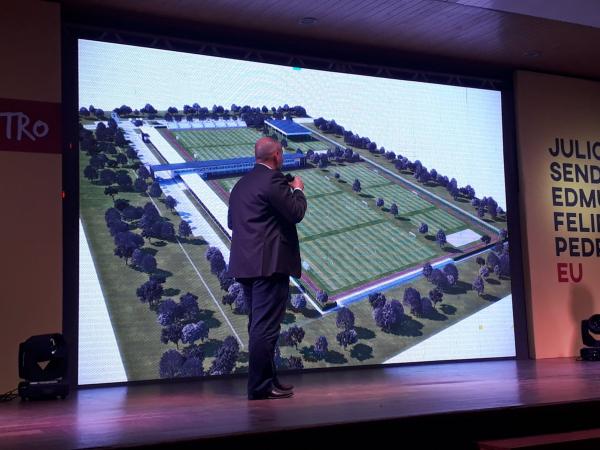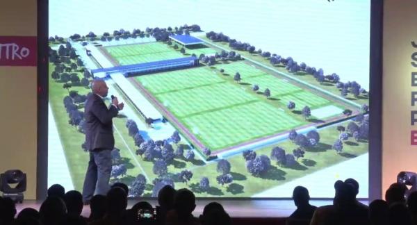 Presidente da TecnoPlano Brasil discursa e mostra um pouco de como seria o CT do Vasco, em Vargem Grande.