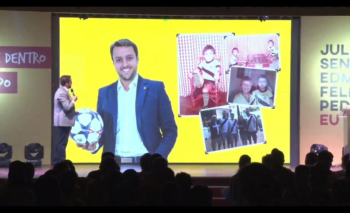Júlio Brant começa a falar dos projetos do futebol. Exalta os ídolos recentes do Vasco em seus apoios #lanceVAS