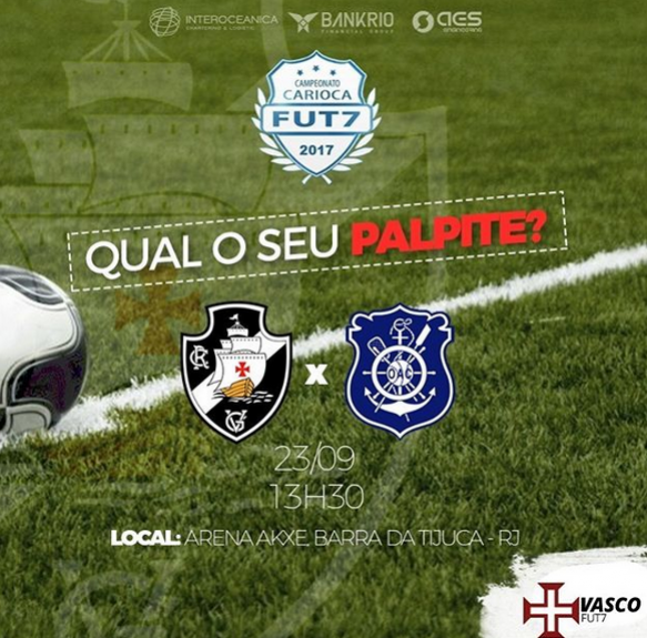06/09/17 - Futebol 7: Com 2 jogos a menos que o líder, Vasco divide a 2ª colocação do Carioca com o Urubu