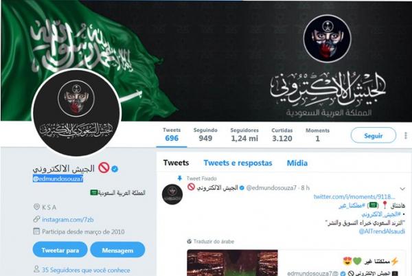 O comentarista Edmundo Souza, do canal por assinatura 'Fox Sports', teve sua conta oficial do Twitter hackeada. A página do craque apareceu com escritas e fotos em árabe, na madrugada de sábado. Veja a foto do perfil do ex-jogador abaixo.