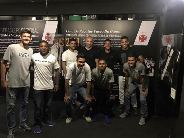 A equipe vascaína de Beach Soccer também foi homenageada na Exposição 119 anos Vestindo a Camisa e os nossos campeões da areia foram hoje conhecer! 👏🏻⚽💢