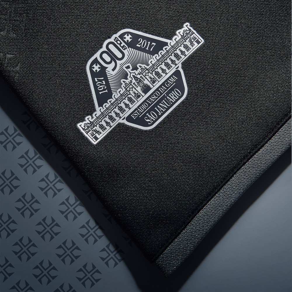 O Vasco lançou nesta quinta-feira a mais nova terceira camisa do clube. Totalmente preta, a blusa faz duas homenagens aos 90 anos de São Januário - uma na parte de cima das costas e outra na barra da camisa - ambas com a fachada do estádio. Outra novidade é a fonte dos números nas costas, que agora será um modelo retrô.