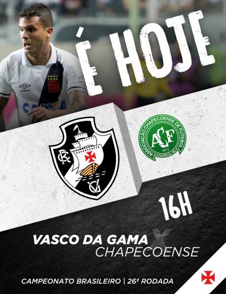 Vasco publica imagem em referência ao jogo deste sábado contra a Chapecoense