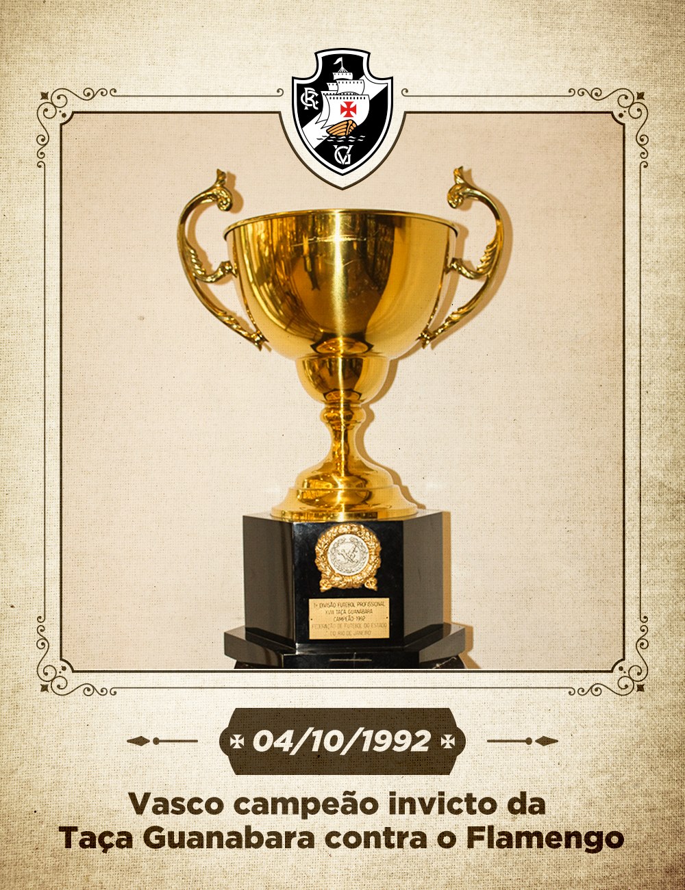 Há 25 anos, o Vasco conquistava sobre o Flamengo a Taça Guanabara de 1992, de forma invicta, em São Januário. A campanha vascaína no 1º turno obteve 7 vitórias e 4 empates, com 17 gols a favor e apenas 2 contra.