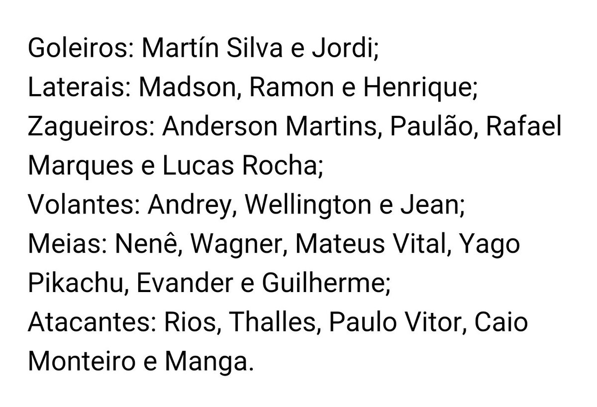 Os relacionados do Vasco para o jogo contra o Avaí. #gevas