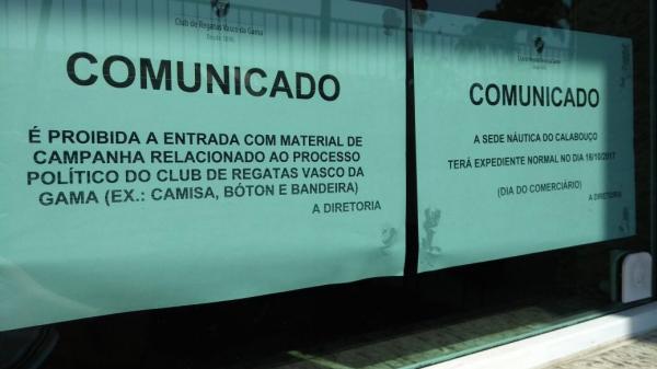 Sede do Vasco no Calabouço apareceu com este comunicado: