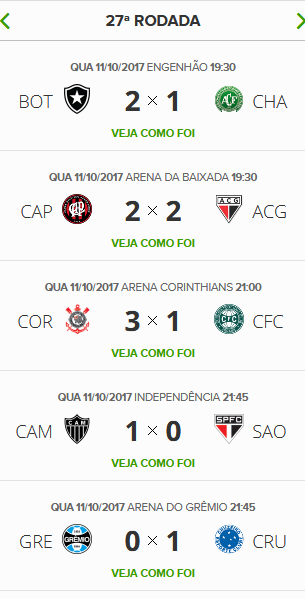 Terminada a 27ª rodada do Brasileiro, o Vasco, que venceu o Avaí por 2 a 1, subiu da 10ª para a 9ª posição na tabela.