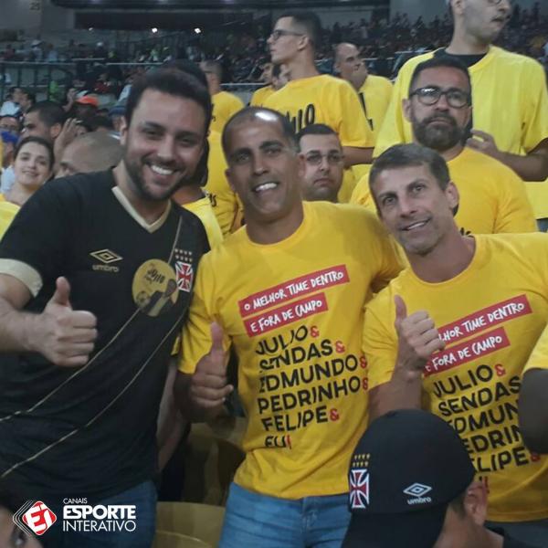ILUSTRES! Felipe e Pedrinho estão no Maracanã para acompanhar o clássico contra o Botafogo. Os ídolos do Vasco da Gama estão com Julio Brant, candidato à presidência do clube.