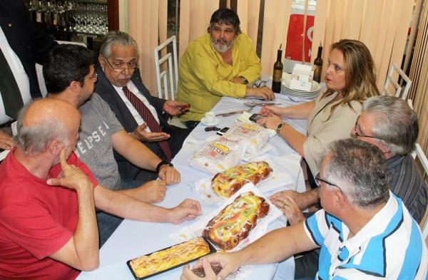 O Presidente Eurico Miranda almoçou hoje com a Diretoria do Sindicato dos Panificadores do Rio ( Rio+Pão ), em São Januário, e conversou sobre as raízes do Vasco e a importância dos comerciantes, especialmente os de padarias e bares, para a existência do clube.