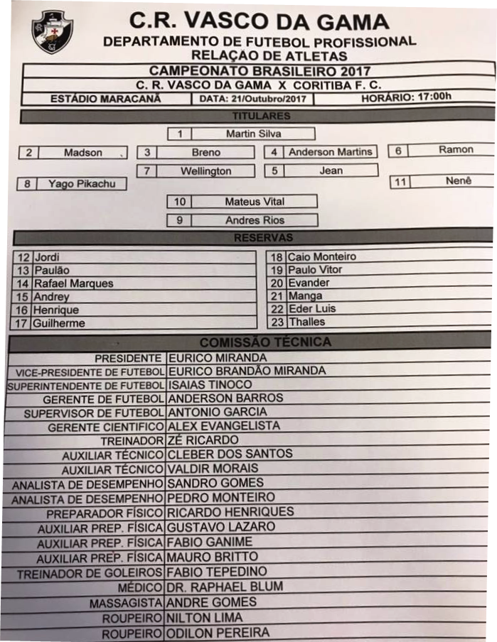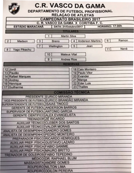 O Vasco enfrenta o Coritiba às 17h deste sábado com a volta de Jean, que estava suspenso na última rodada.