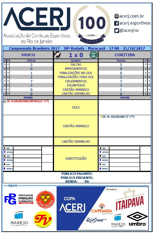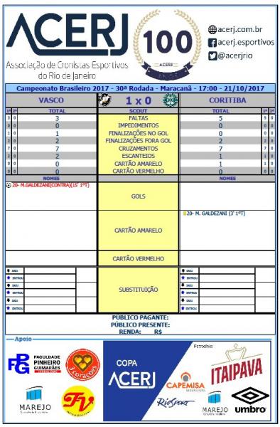 Scout do 1º Tempo de Vasco e Coritiba pela 30ª rodada do Campeonato Brasileiro 2017 #acerjinforma #VASxCRC #Brasileirao2017