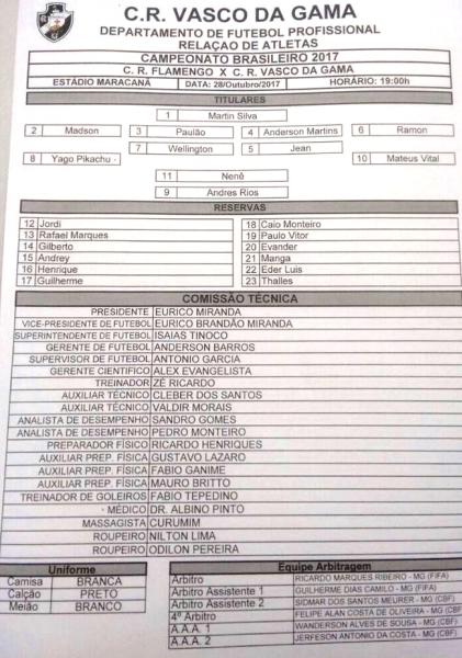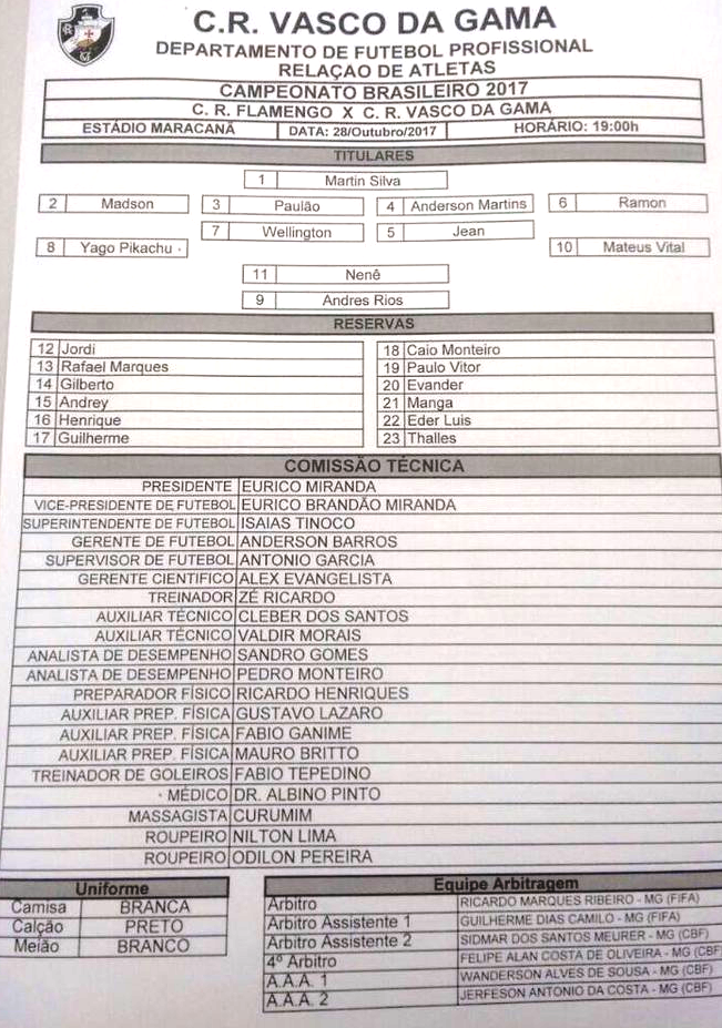 Martín Silva; Madson, Anderson Martins, Paulão e Ramon; Wellington, Jean, Yago Pikachu, Mateus Vital e Nenê; Andrés Ríos.