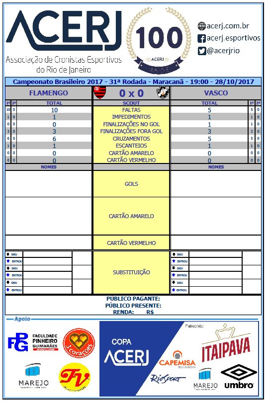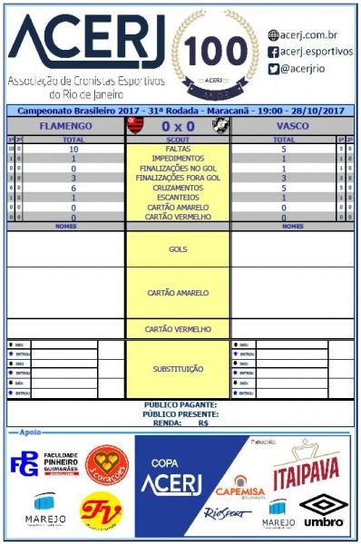 Scout do 1º Tempo de Flamengo e Vasco pela 31ª rodada do Campeonato Brasileiro 2017 #acerjinforma #FLAxVAS #Brasileirao2017