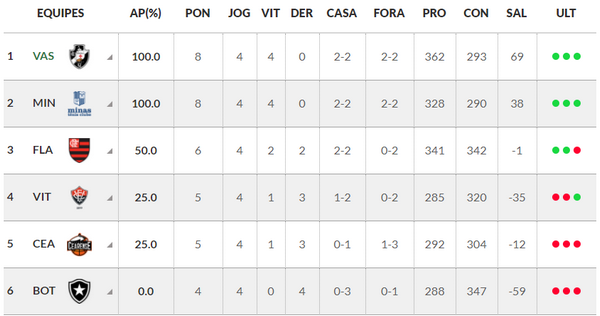 Após os jogos da 4ª rodada, o Vasco vai liderando a Copa Avianca, torneio preparatório para o NBB 10.