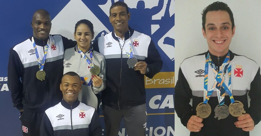A equipe de natação paralímpica do Vasco da Gama fez bonito na disputa da última etapa nacional do Circuito Brasil Loterias Caixa, realizada no Centro de Treinamento Paralímpico Brasileiro, em São Paulo, entre os dias 27 e 29 de outubro. A missão de subir no pódio foi cumprida por sete vezes, sendo quatro delas no lugar mais alto. Além disso, foram conquistadas duas pratas e um bronze. O desempenho colocou o Gigante da Colina na terceira posição geral entre os clubes presentes.