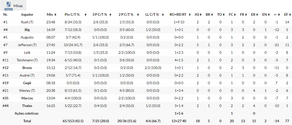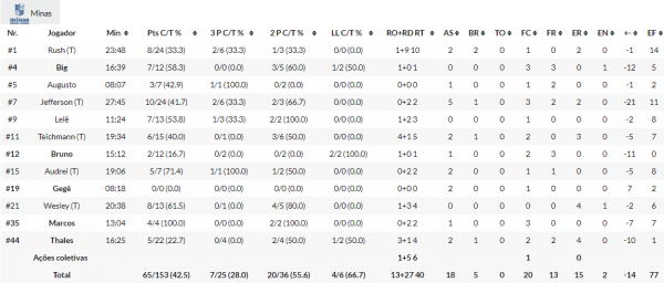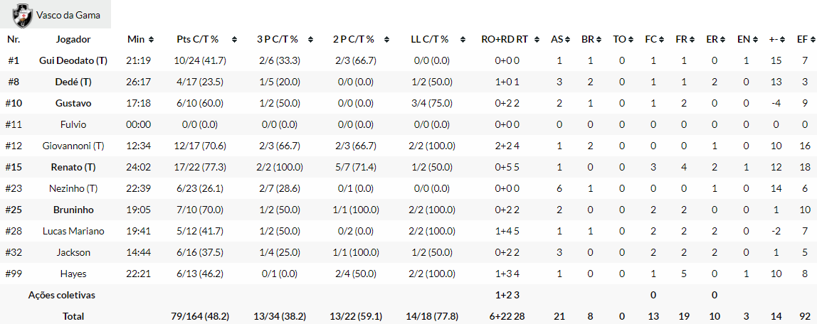 Na última rodada da fase regular, Vasco vence Minas por 79 a 65 e termina 100% na Copa Avianca