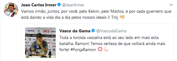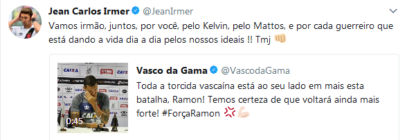 Em rede social, Jean manda força para Ramon, que ficará 6 meses fora dos gramados