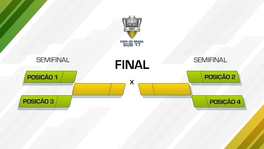 A Confederação Brasileira de Futebol realizará, nesta quarta-feira (01), às 16h, no auditório da sede da entidade, o sorteio dos confrontos e da ordem dos mandos de campo das Semifinais da Copa do Brasil Sub-17. Corinthians, Vitória, São Paulo, Chapecoense, Cruzeiro, Flamengo, Palmeiras e Vasco da Gama ainda disputam as quatro vagas. A CBF TV transmitirá as definições ao vivo. Acompanhe no site oficial da CBF e nas redes sociais da entidade. As datas-base para os jogos de ida e volta são 8 e 15 de novembro, ambas numa quarta-feira.