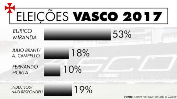 As eleições do Vasco estão cada vez mais próximas e, com isso, pesquisas com a intenção de votos dos sócios são feitas com frequência neste período. No dia 7 de novembro, os sócios do clube vão decidir o futuro presidente do clube nos três anos que estão por vir e, segundo um estudo realizado pela chapa 'Reconstruindo o Vasco', de Eurico Miranda, a reeleição do atual mandatário do Cruz-Maltino está bem encaminhada. Confira os números: