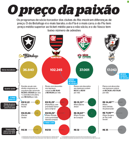 Os pacotes garantem lugar em todos os jogos do Botafogo como mandante na próxima temporada e não tiveram alteração de preço: custam a partir de R$ 200 e aumentam dependendo do setor do estádio. Cada partida pode sair por até R$ 12,22 se o comprador for a 30 no ano. Além do pacote, o torcedor precisa se associar ao programa Sou Botafogo, que custará R$ 14,90 por mês, R$ 1 a mais do que neste ano.