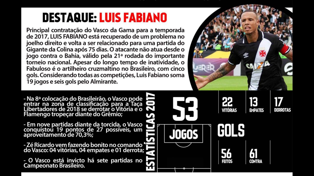 Vasco divulga guia do jogo deste domingo contra o Vitória para a imprensa; confira