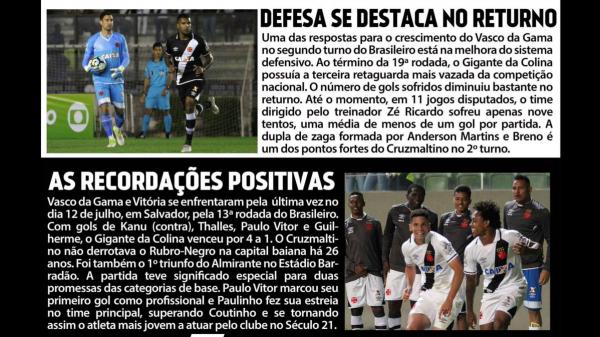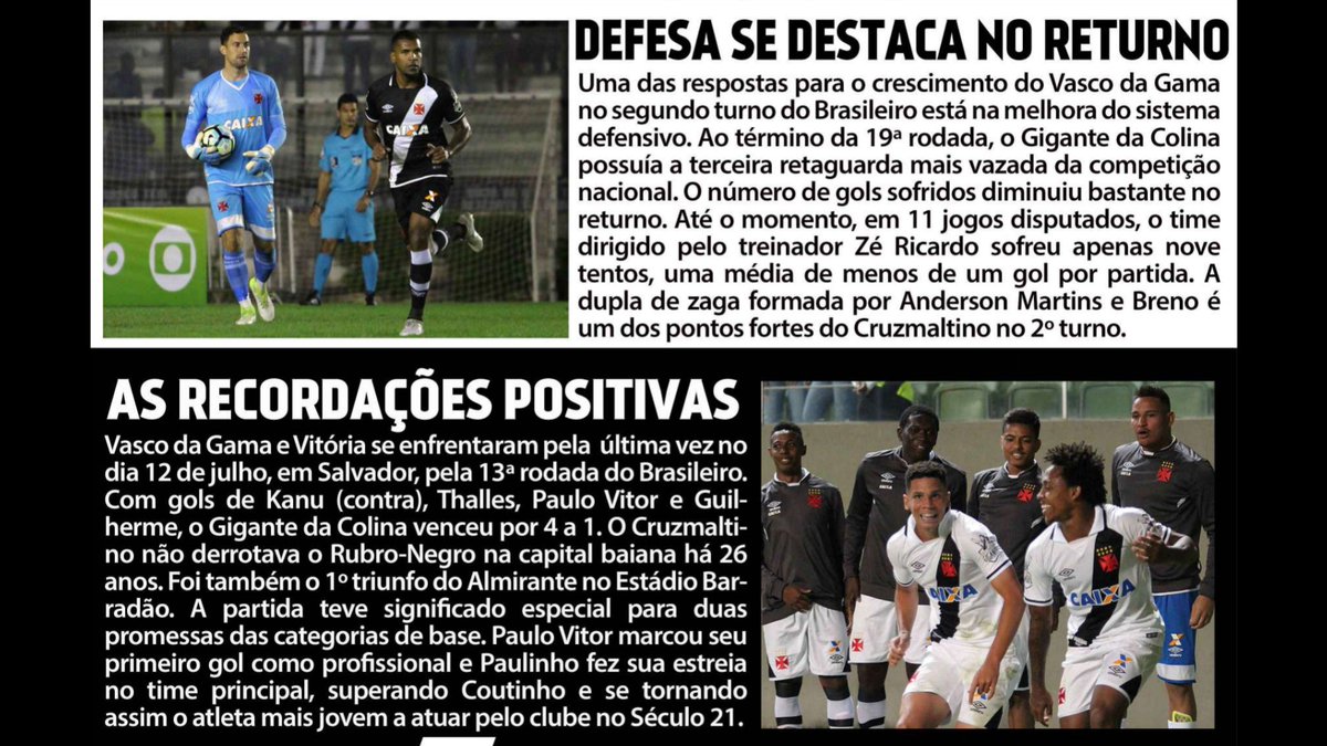 Pra finalizar, detalhe para a defesa do Vasco no returno e o triunfo em cima do Vitória no 1° turno. Material cedido pelo @VascodaGama!