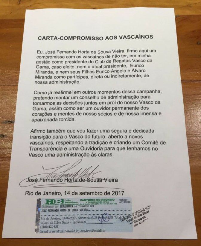 Não deem crédito às mentiras dos que de fato vivem de enganar as pessoas de boa fé. Fernando Horta, a despeito de todas as mentiras criadas, continua firme e caminha a passos largos para vencer as eleições e principalmente, mudar o Vasco.