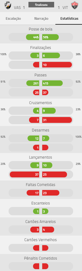 Confira estatísticas de Vasco 1 x 1 Vitória