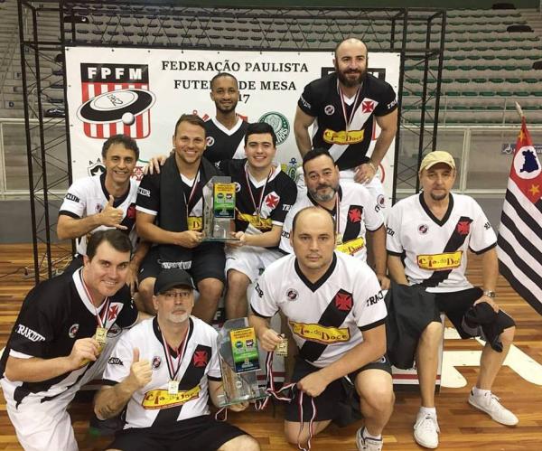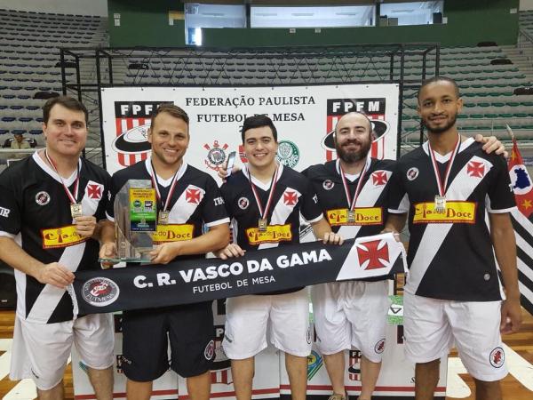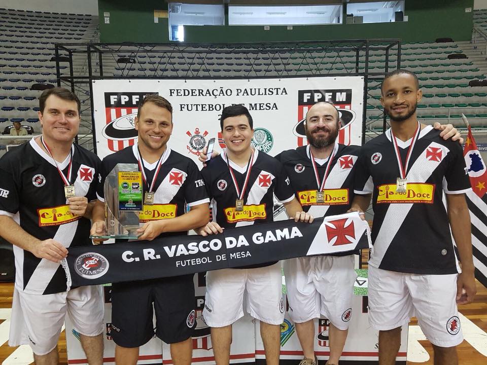 É CAMPEÃO! A equipe vascaína de futebol de mesa conquistou o Campeonato Brasileiro Interclubes da Série Ouro, título nacional mais importante da regra 12 toques, no último fim de semana, de 2 a 5 de novembro, na Arena Santos, em São Paulo.