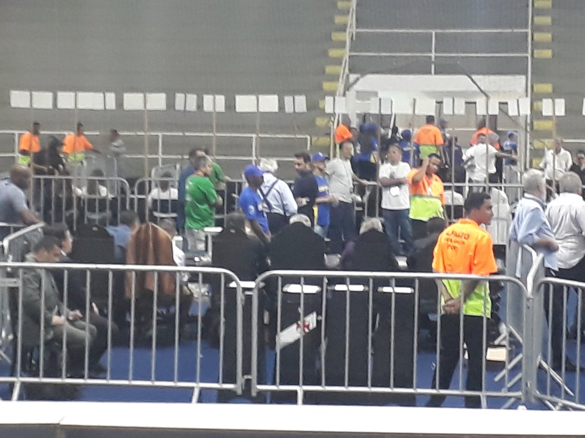 Eurico e Brant conversam neste momento aqui no Ginásio de São Januário.