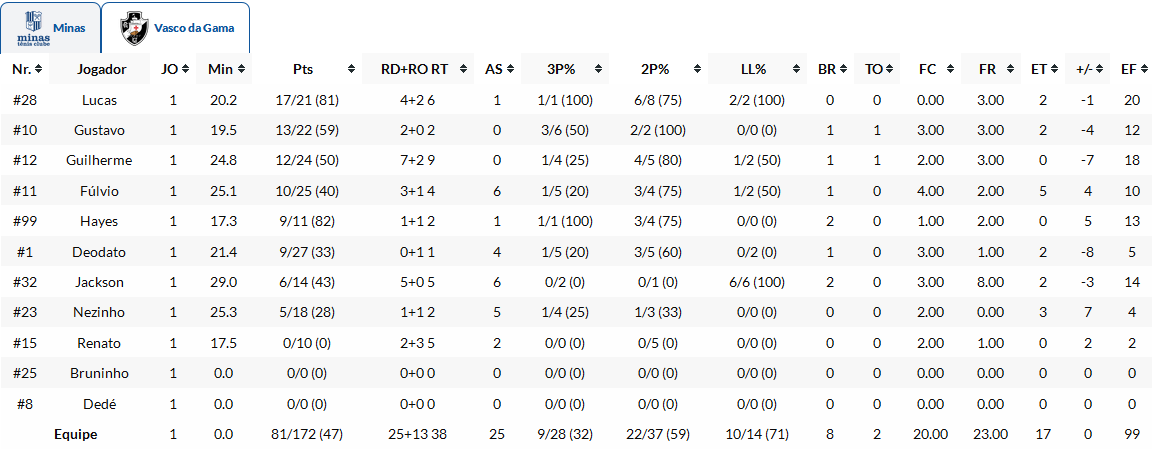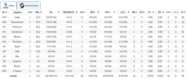 O Vasco perdeu para o Minas na Arena Minas na noite desta terça-feira por 82 a 81 na estreia do NBB.