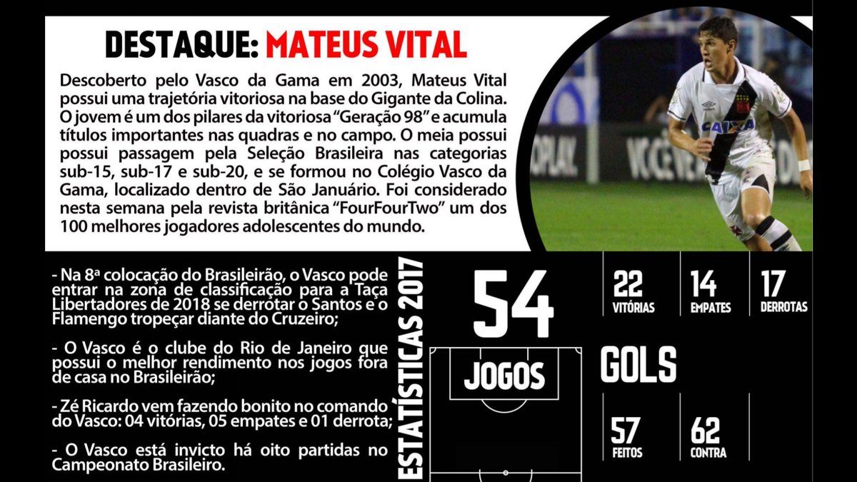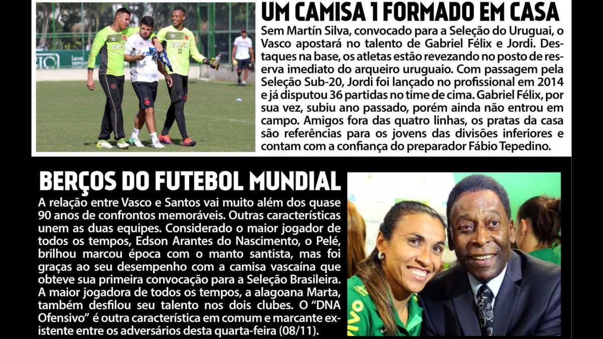 Vasco divulga guia do jogo desta 4ª-feira contra o Santos para a imprensa; confira